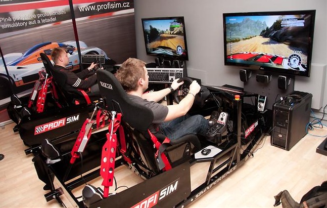 Naše simulátory jsou vybaveny pohodlnou originální závodní sedačkou ve velikosti XL. Dále kvalitním volantem včetně tzv. zpětného rázu ( force feedbacku), třemi pedály ( spojka, brzda, plyn ), řazením pod volantem (pádla) a sekvenční řadící pákou. Ve spojení s výkonným PC, surround ozvučením 5.1 včetně subwooferu a velkou LED LCD televizí vám nabídnou opravdu neopakovatelný zážitek z jízdy závodním vozem anebo let stíhačkou či Boeingem!